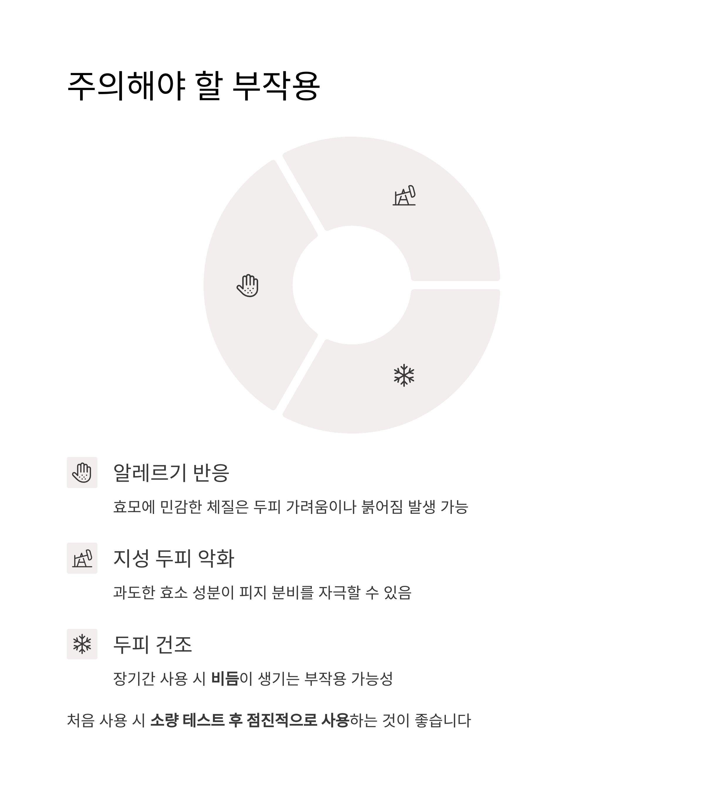 - 두피 건조: 장기간 사용 시 두피가 건조해지고 비듬이 생기는 부작용도 일부 사용자에게 보고됩니다.