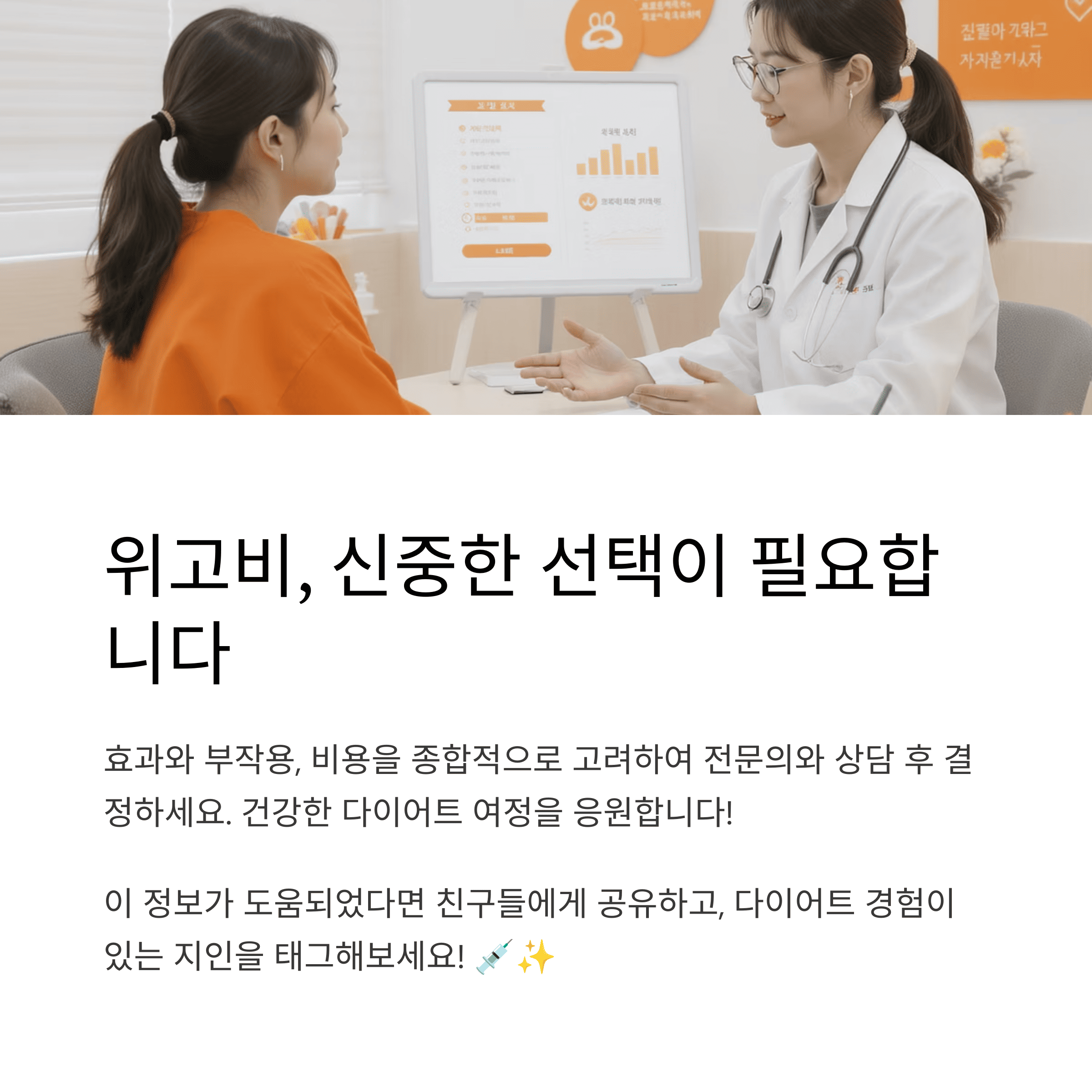 위고비 관련 내용은 개인의 건강 상태에 따라 달라질 수 있으니, 전문가와 상담 후 신중하게 결정하시길 바랍니다.