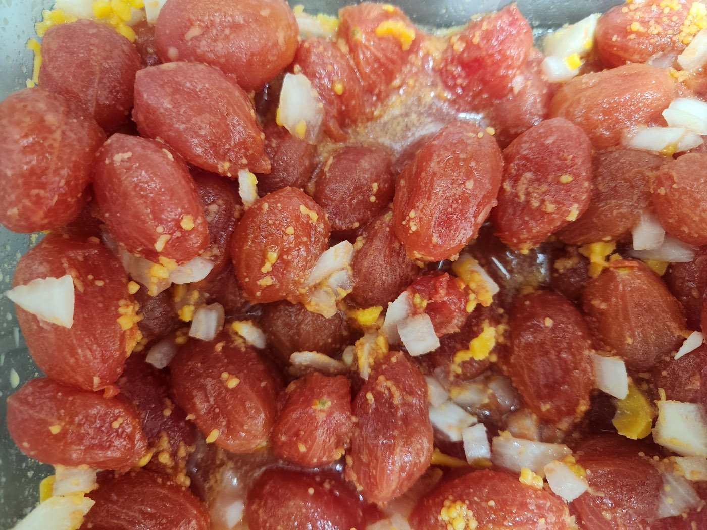 - 토마토 삶기 : 물을 끓으면 토마토를 넣어 삶아 줍니다. 껍질이 벌어지면 건져서 껍질을 벗겨냅니다.