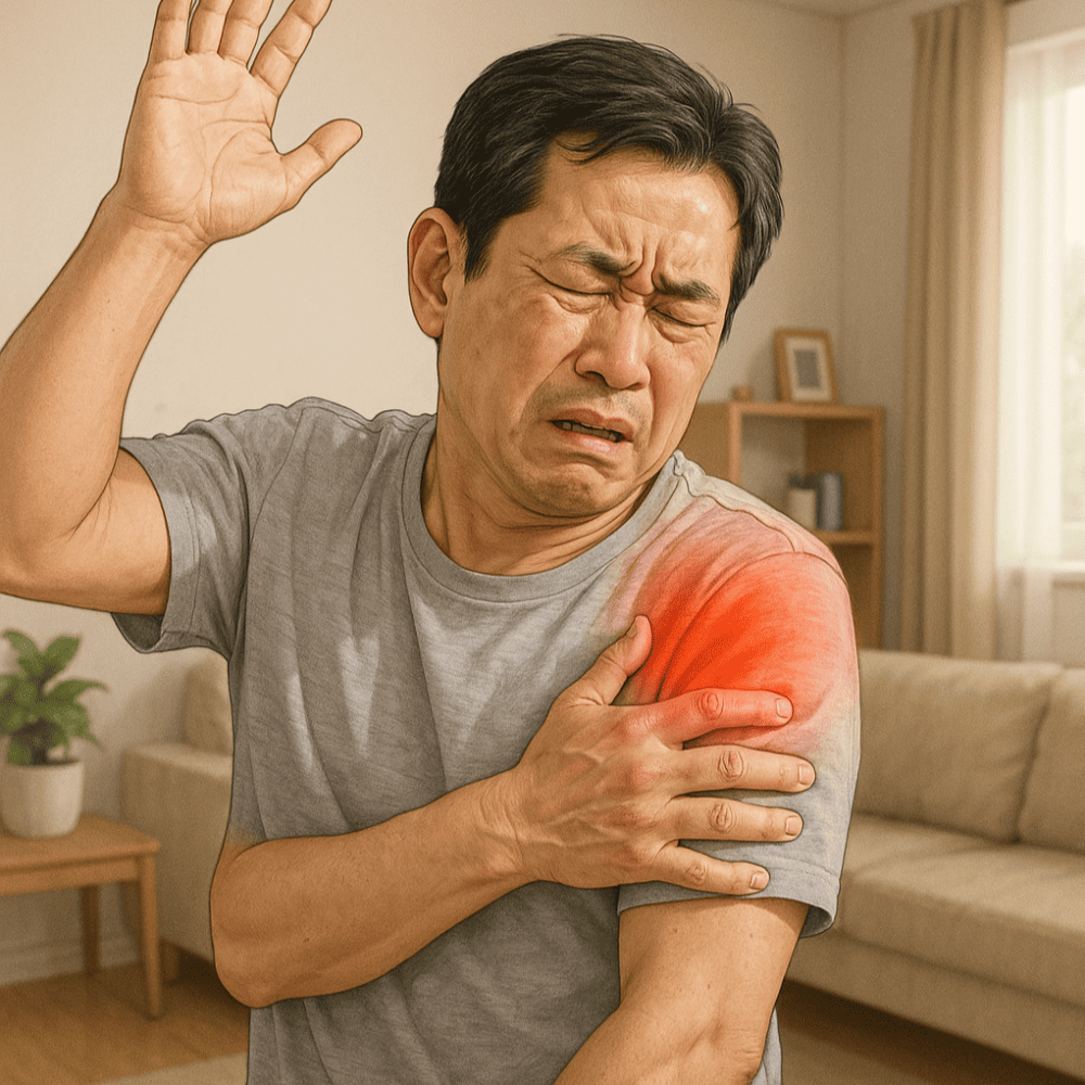 • 어깨 통증: 초기에는 야간에 통증이 심해지고, 팔을 올리거나 돌릴 때 날카로운 통증이 느껴집니다.