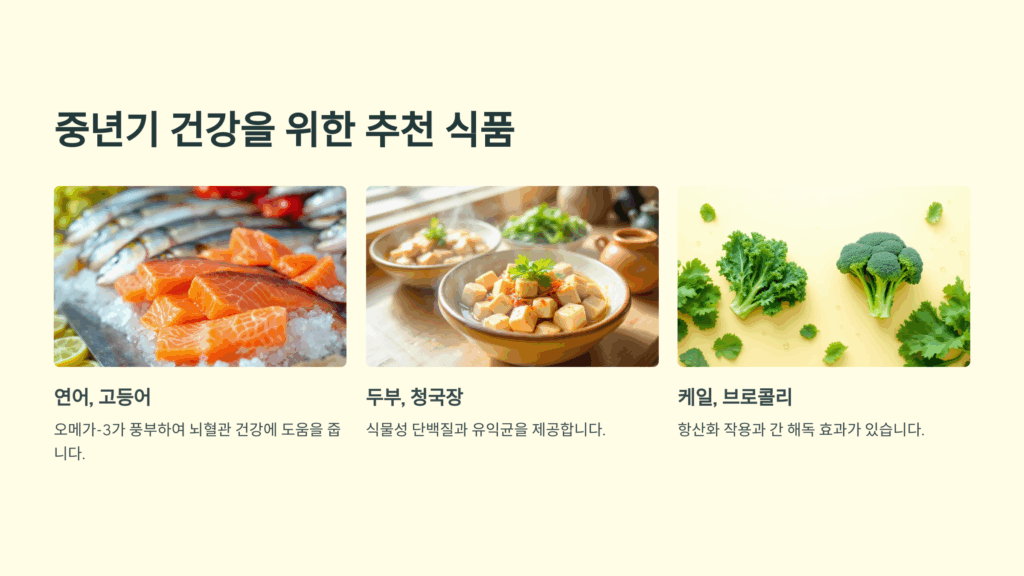 - 연어, 고등어 – 오메가-3 풍부, 뇌혈관 건강에 도움
