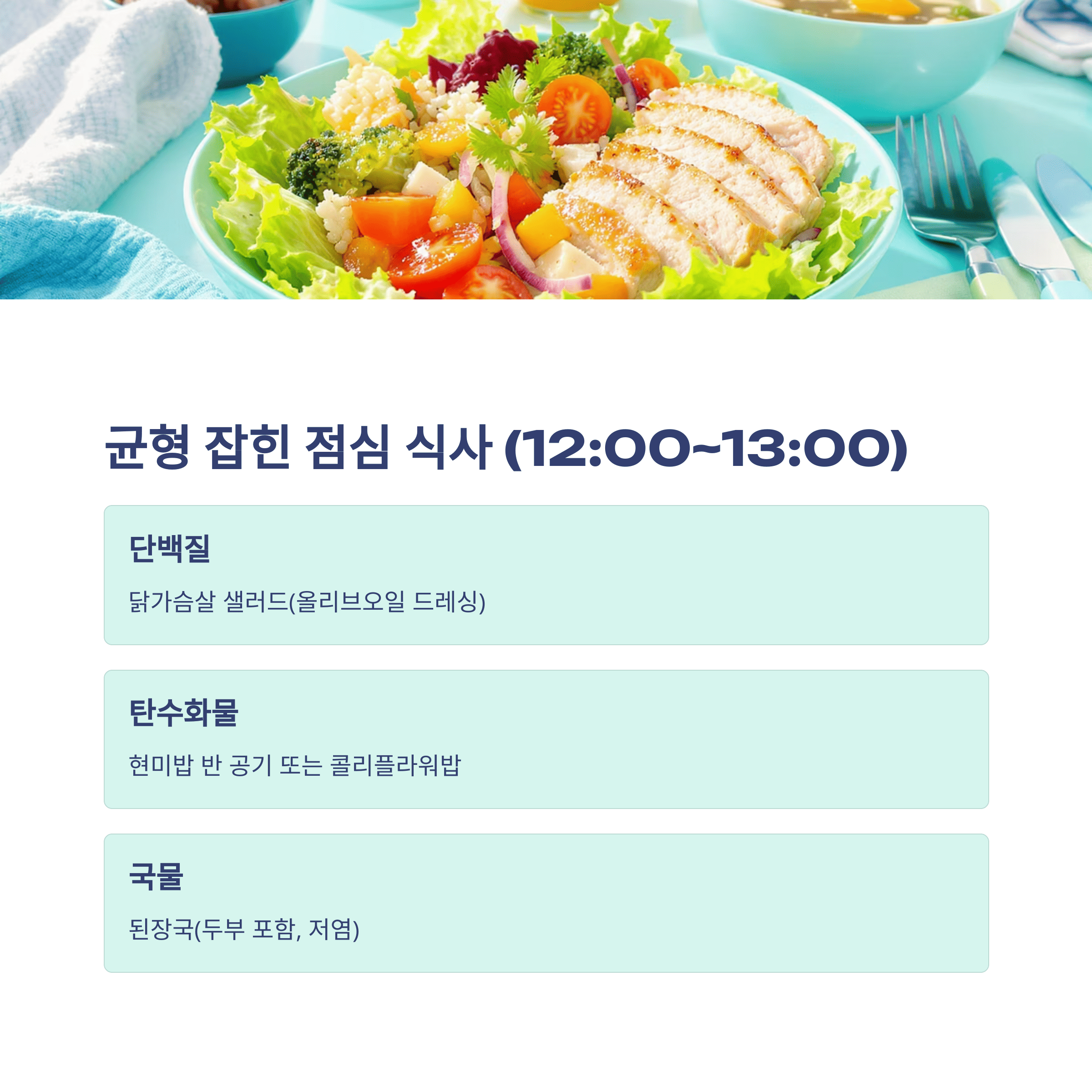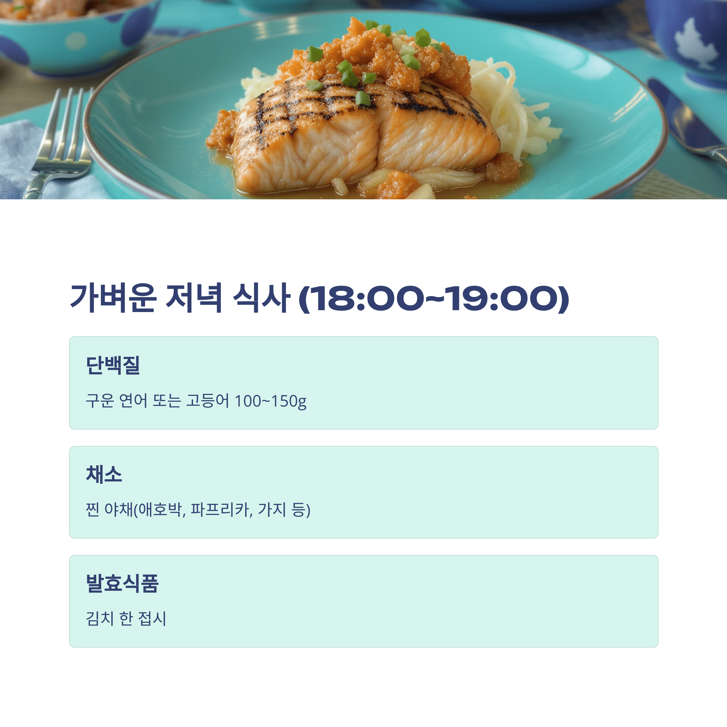 아래는 실제 적용 가능한 하루 식단 예시입니다.