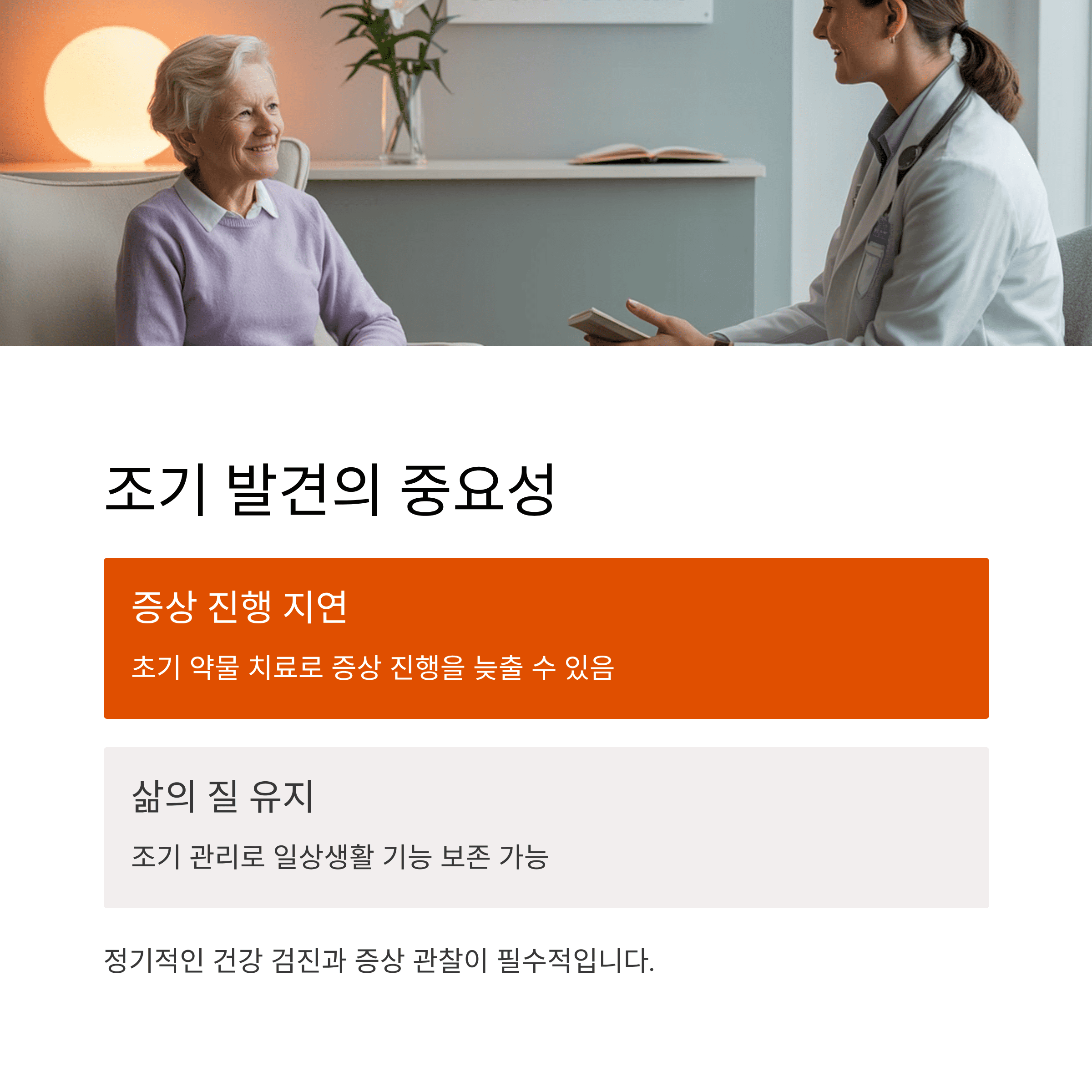 특히 초기에 증상을 인지하고 빠르게 대응하는 것이 치료와 삶의 질 유지에 큰 차이를 만듭니다.