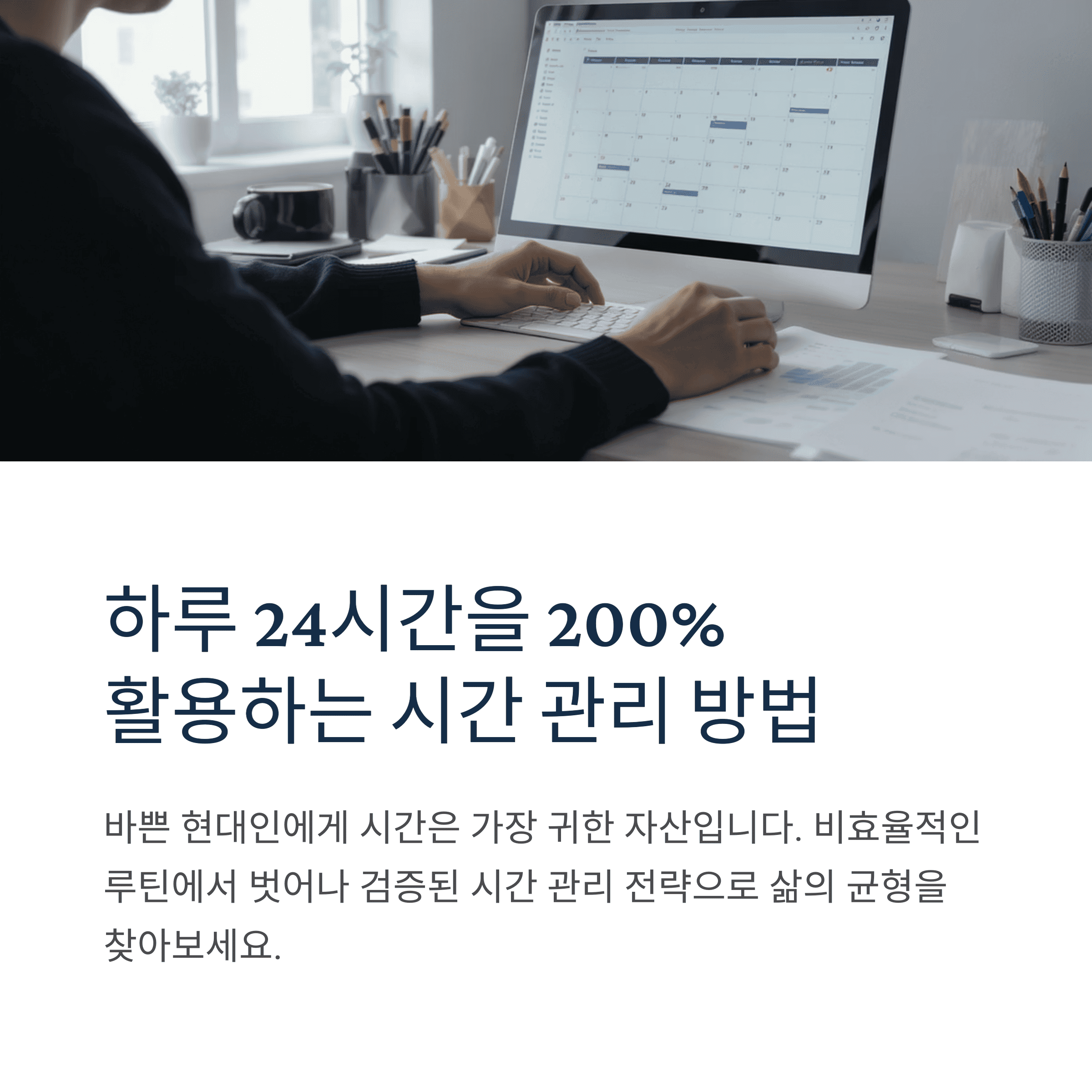시간을 관리하는 능력은 결국 인생을 관리하는 능력과도 같습니다. 위에서 제안한 방법을 하나씩 실천해 나가면 분명히 하루가 더 여유로워지고, 성취감 있는 삶을 살 수 있습니다.