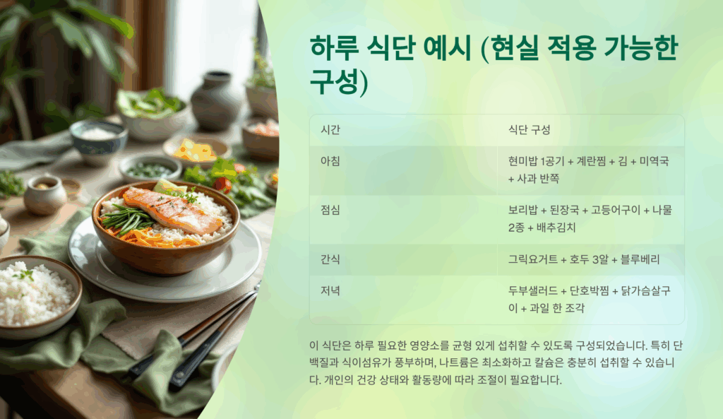 하루 식단 예시 (현실 적용 가능한 구성)